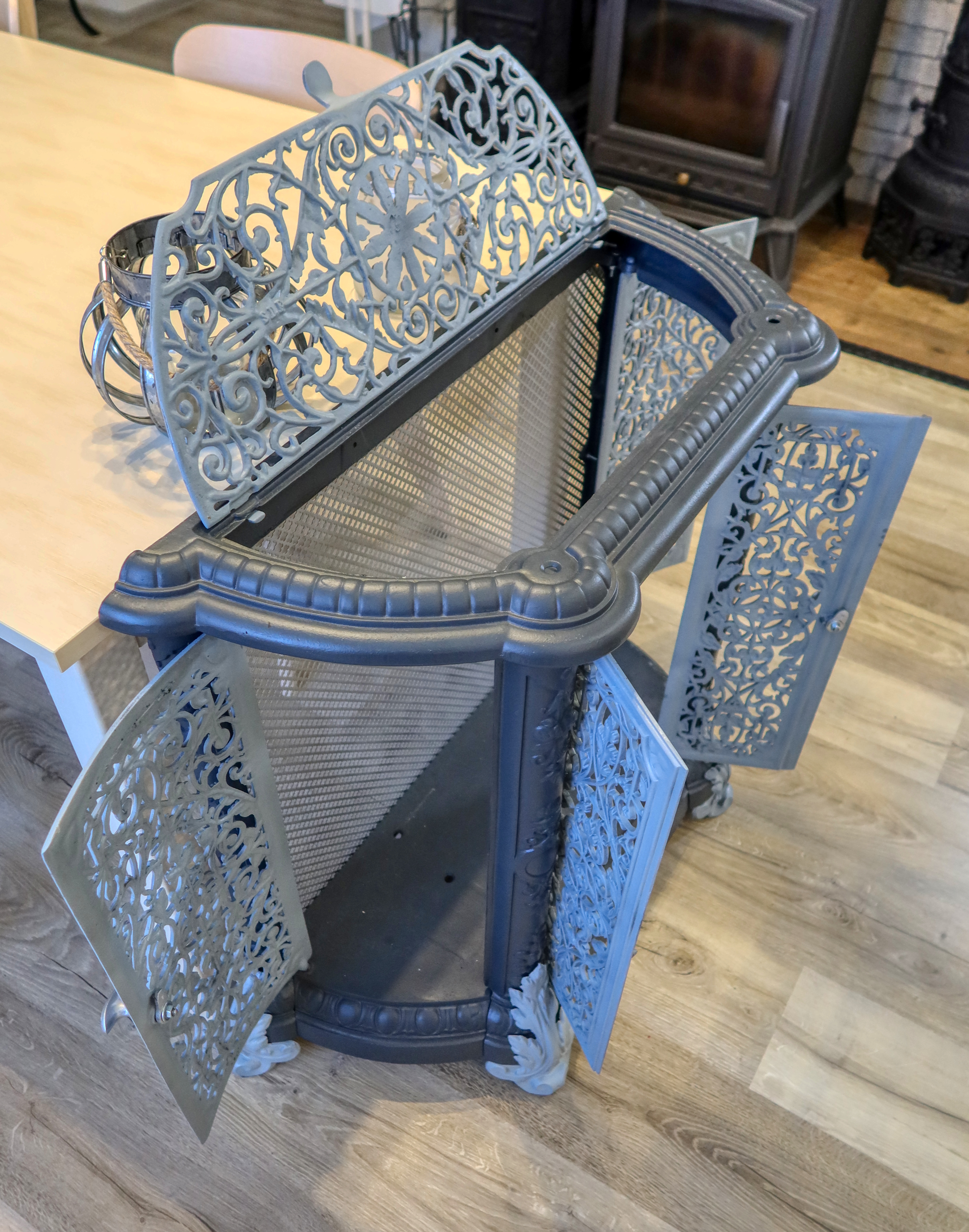 Masívny liatinový kus nábytku s vysokou estetickou hodnotou. Liatinovú komodu je možné použiť ako ukončenie jedálenského stola, kuchynský ostrov, komodu pod zrkadlo, komodu pod obraz, odkladací priestor k nevyplnenej/prázdnej stene atď.