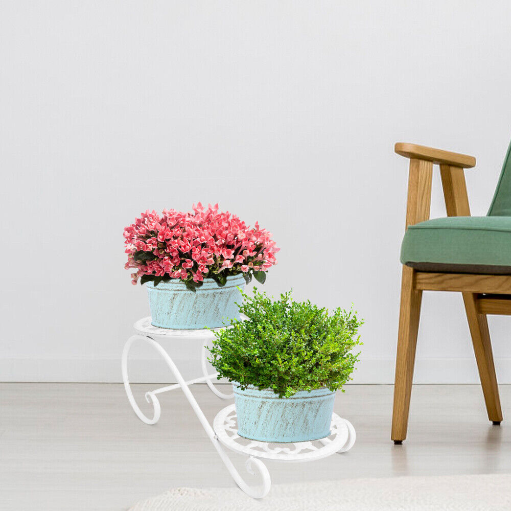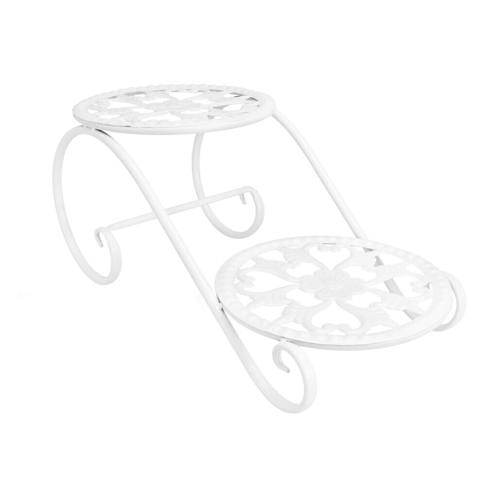 Kovový stojan na kvety v bielom prevedení, 2 poschodia